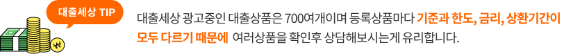 대출세상 등록상품마다 기준과 한도, 금리, 상환기간이